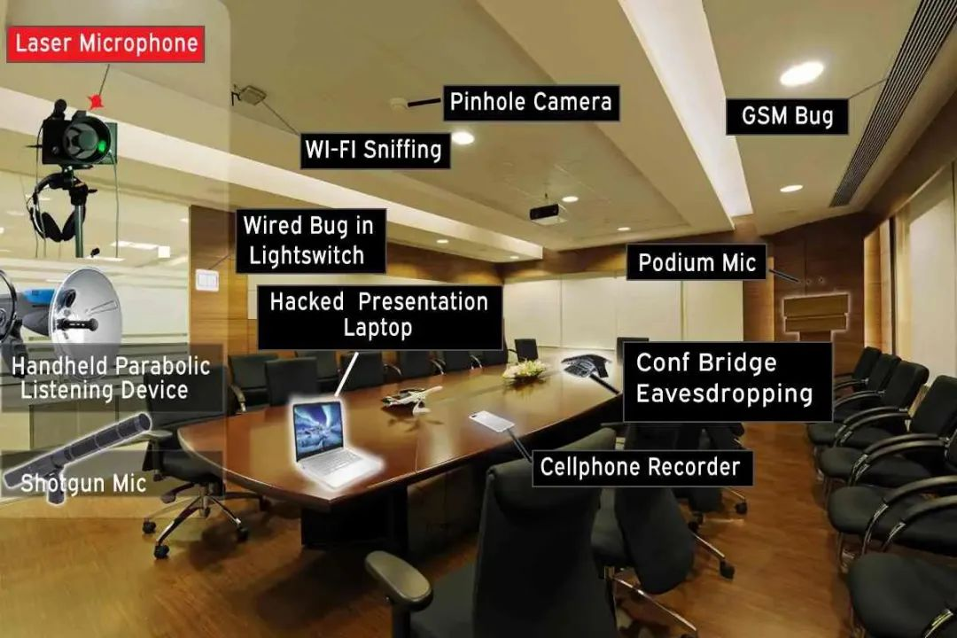 一位國(guó)外的TSCM專家曾經(jīng)說(shuō)過(guò):“我檢查過(guò)的會(huì)議室不計(jì)其數(shù),沒有幾個(gè)地方是絕對(duì)安全的。只要發(fā)出聲音,就存在被竊聽的可能性。”